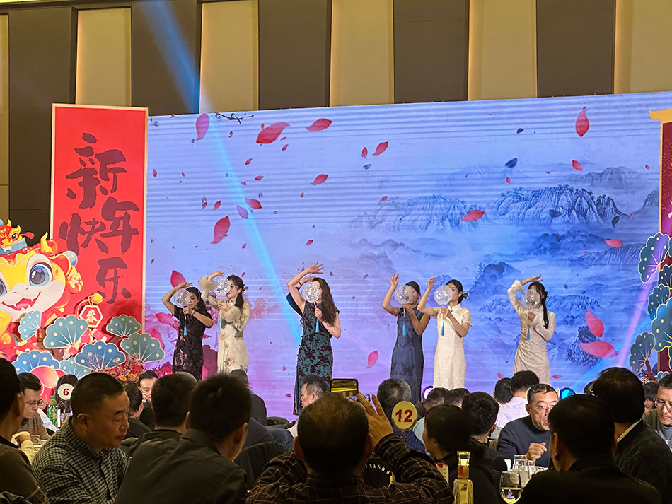 随着夜幕的降临,文艺表演环节正式开启,平日里专注于工作的同事们,化身舞台精灵,用才艺编织梦想,用热情点燃希望。大家精心筹备的节目轮番亮相,从古典的旗袍走秀到民族融合舞蹈,从诙谐幽默的脱口秀到悦耳动听的歌曲,更有川剧变脸,小游戏互动等,让人目不暇接。现场气氛热烈,掌声、笑声、欢呼声此起彼伏,最令人期待的抽奖环节,更是将年会气氛推向沸点,随着一个个奖项的揭晓,幸运儿们的脸上洋溢着难以言喻的喜悦,每一份奖品都承载着公司对大家的深深关怀与祝福。